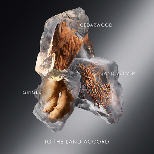 Il vetiver della sabbia, dalle intense sfaccettature minerali, si unisce al legno di cedro di origine naturale mentre lo zenzero